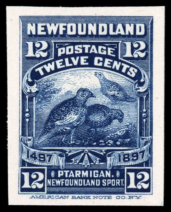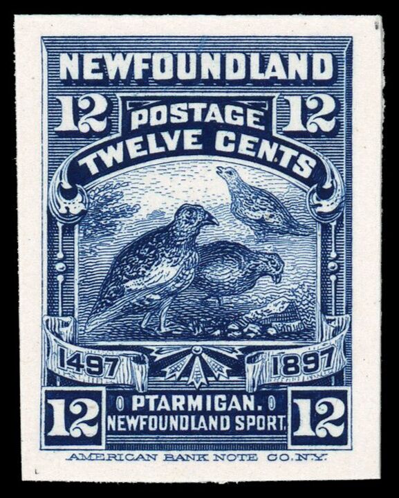Timbre de Terre-Neuve #69P - Perdrix des neiges ou ptarmigan (1897) 12¢