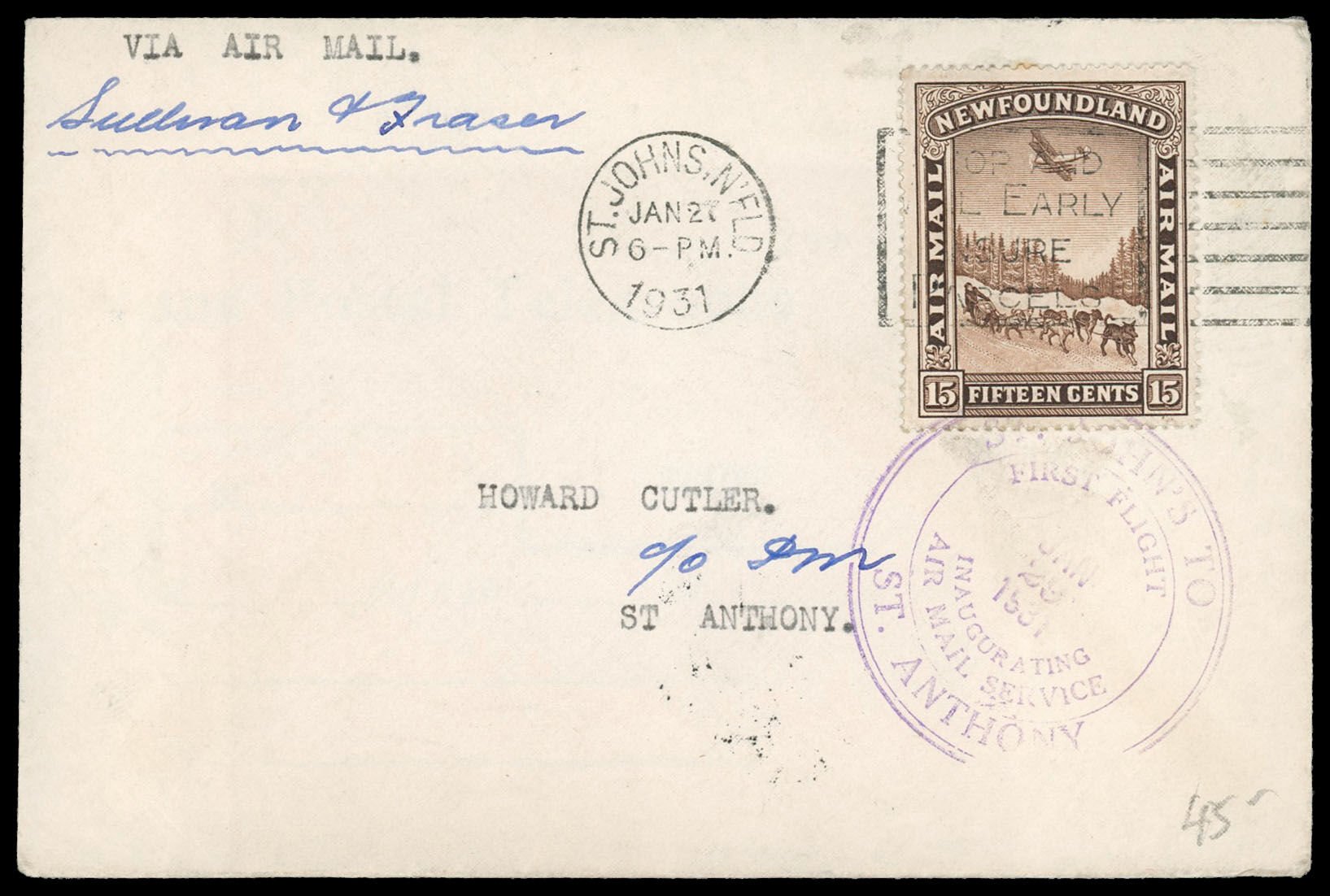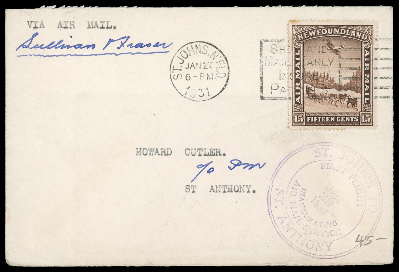Timbre de Terre-Neuve #C6 - Traîneau à chiens et avion (1931) 15¢