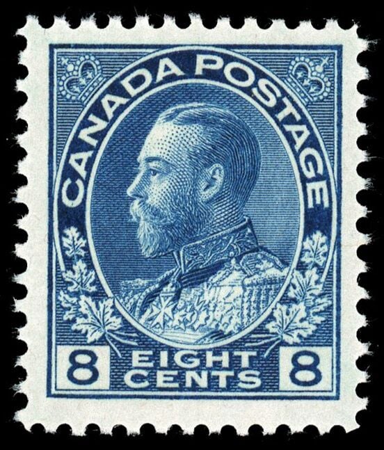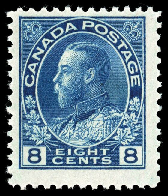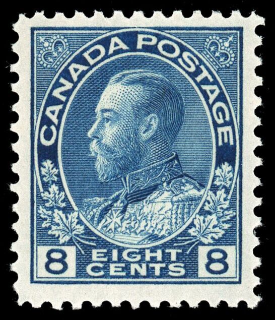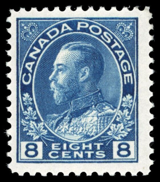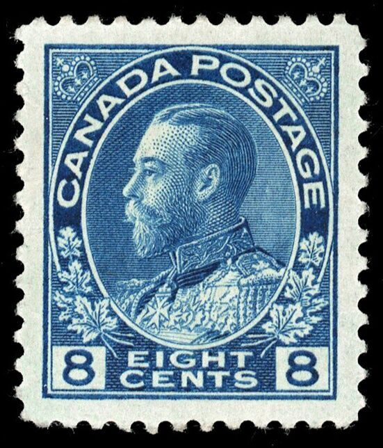 Beau, frais, neuf- Très bien sans charnière, Canada #115 Roi George V « Amiral » (1925) 8¢ - Impression sèche.