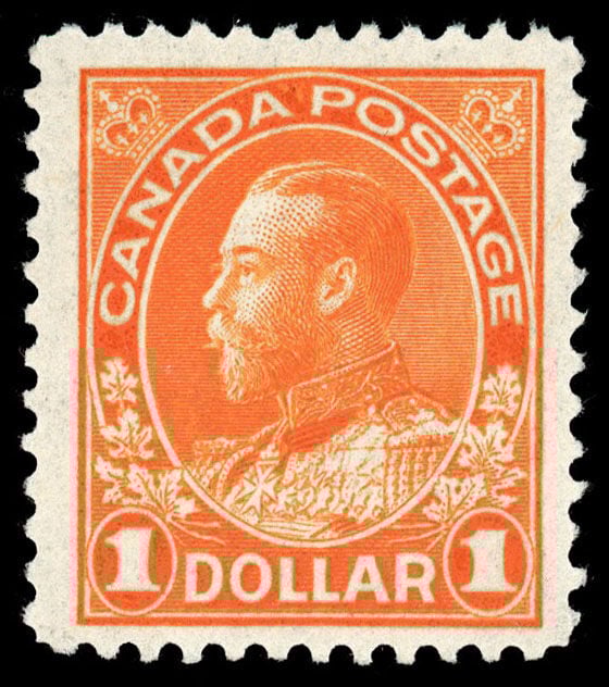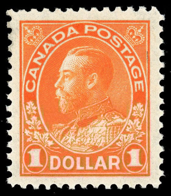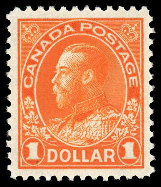 Beau timbre de 1 $ du Canada #122 Roi George V « Amiral » - Neuf - Très Bien à Extra Bien Sans Charnière.