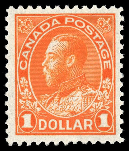 Centrage mathématique et frais Canada #122 Roi George V « Amiral » (1925) 1 $ Neuf - Extra Bien Légère charnière !