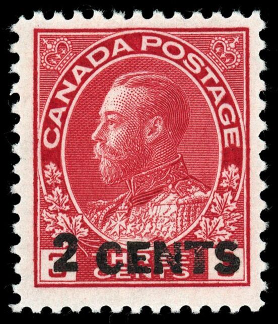 Canada #139 difficile à trouver, très frais, neuf, très bien et sans charnière rare surcharge « 2 CENTS » sur une ligne !