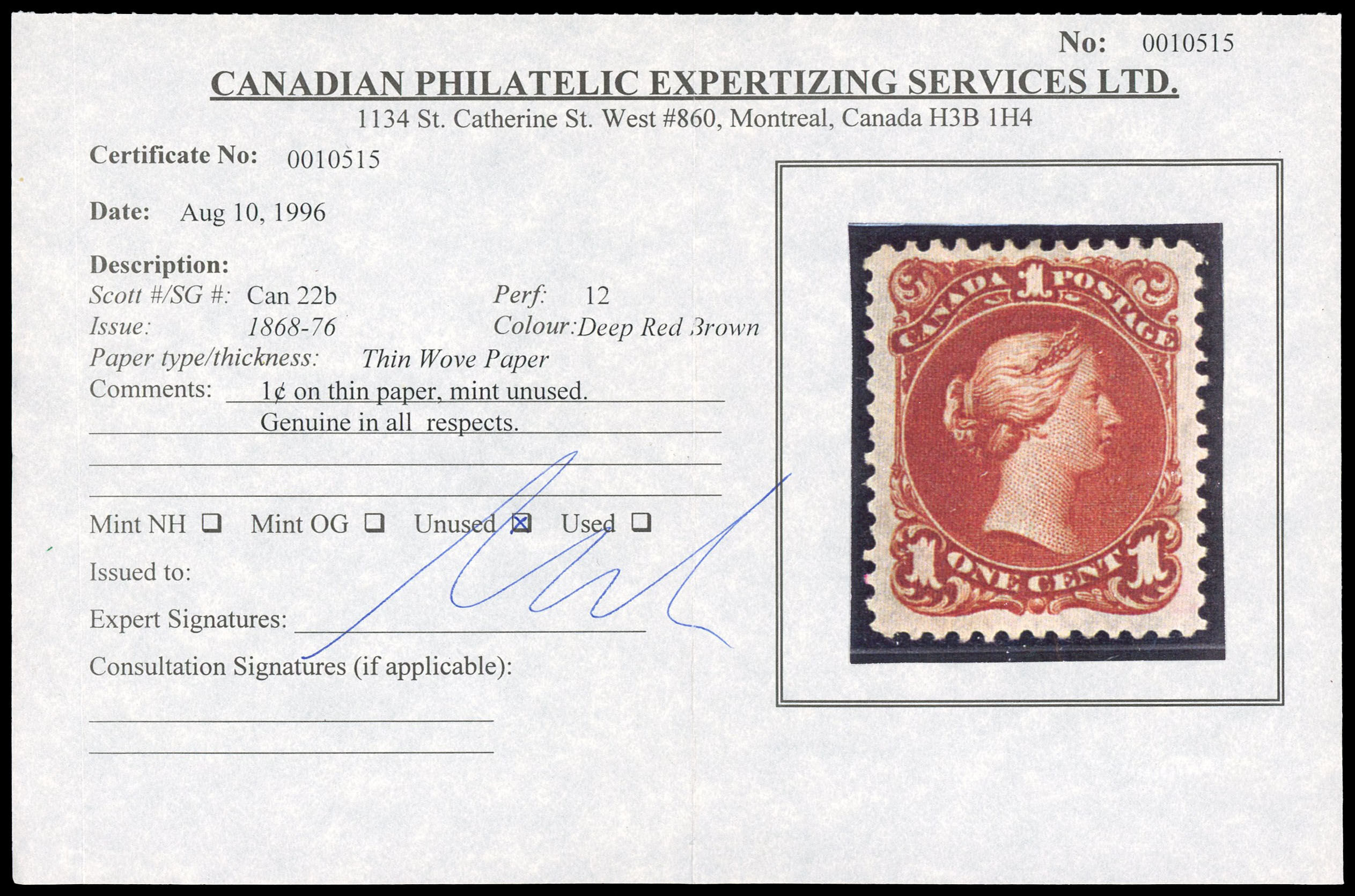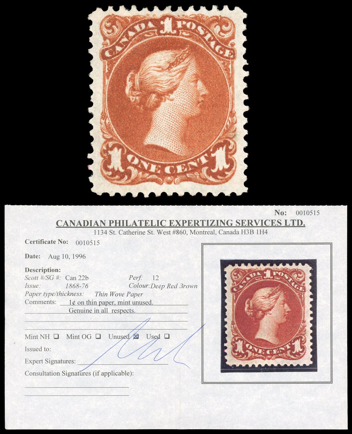 Timbre du Canada #22b - Reine Victoria (1868) 1¢
