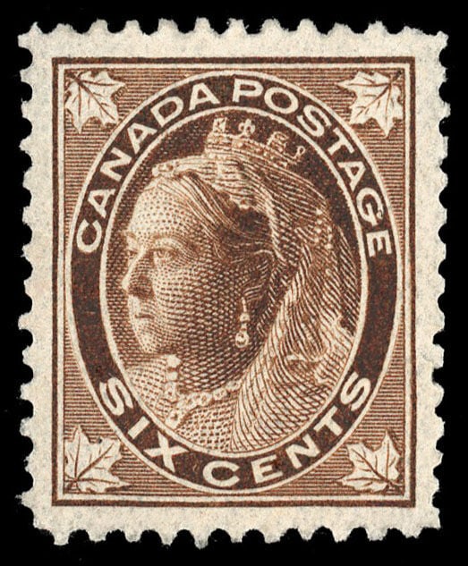 Reine Victoria 6¢ brun. De l'émission feuilles d'érables.