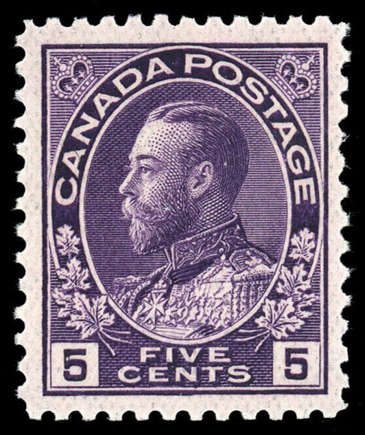 Fresh Canada #112 Very Fine Mint Never Hinged 5¢ King George V "Admiral" - Violet!