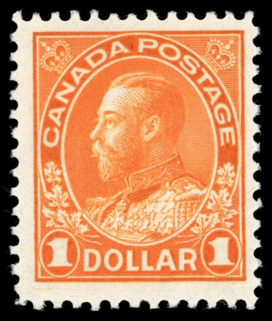 Almost Very Fine, fresh & never hinged example of the high-value George V Admirals, $1.00 orange! A hard-to-find stamp.