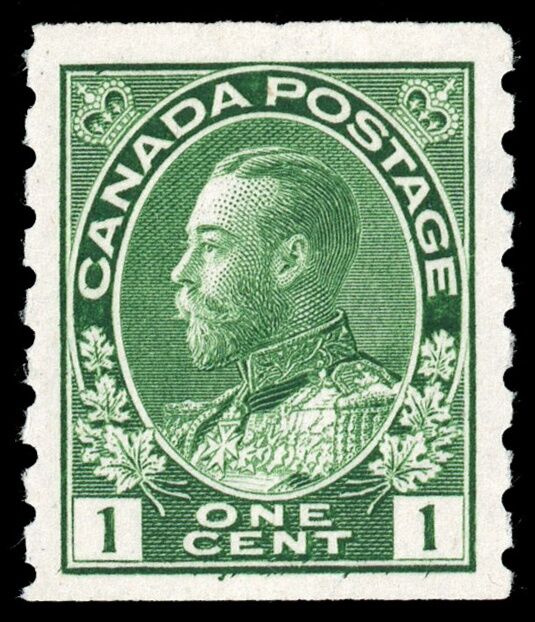 Canada #125 1¢ King George V "Admiral" Coil Mint - Very Fine to Extra Fine Never Hinged & fresh!