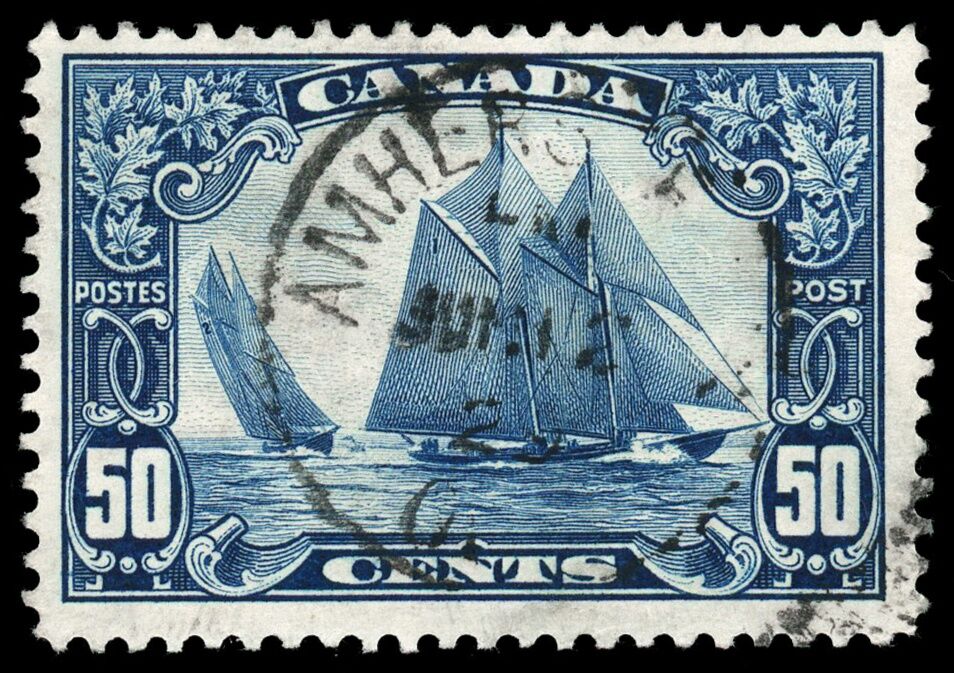 Iconic Canada #158 Bluenose (1929) 50¢ Fresh Used Very Fine example with a nice "CDS" from Amherstburg, Ontario on June 12, 1929!