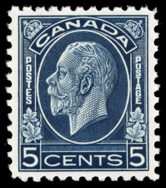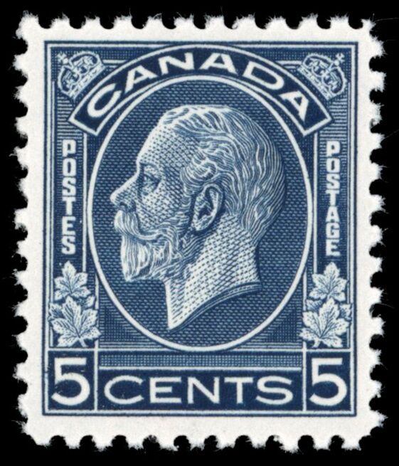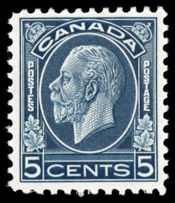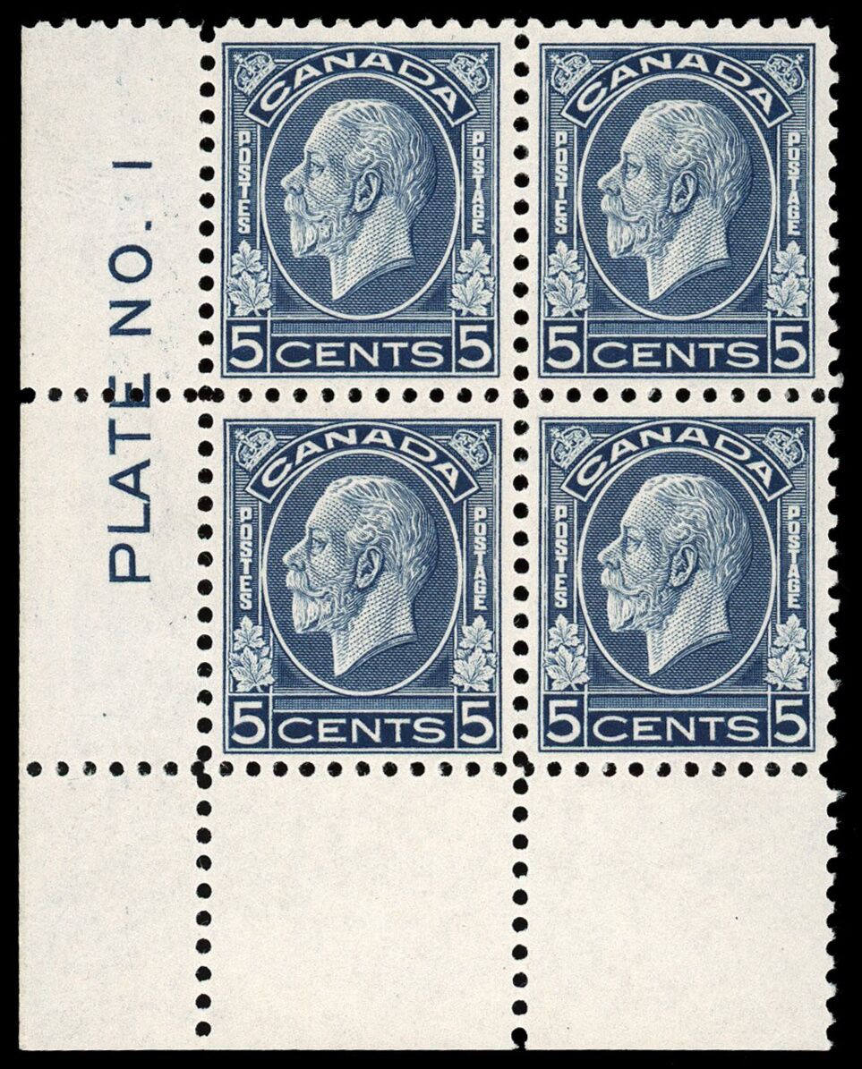 Canada #199 Plate Block #1 (Lower Left) Mint - Very Fine lightly Hinged of the 5¢ King George V "Medallion" Issue!