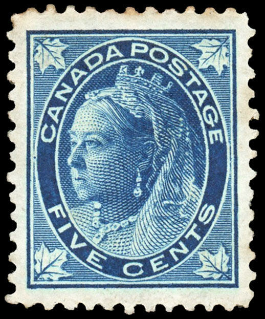 Queen Victoria 5¢ dark blue. From the maple leaf issue.