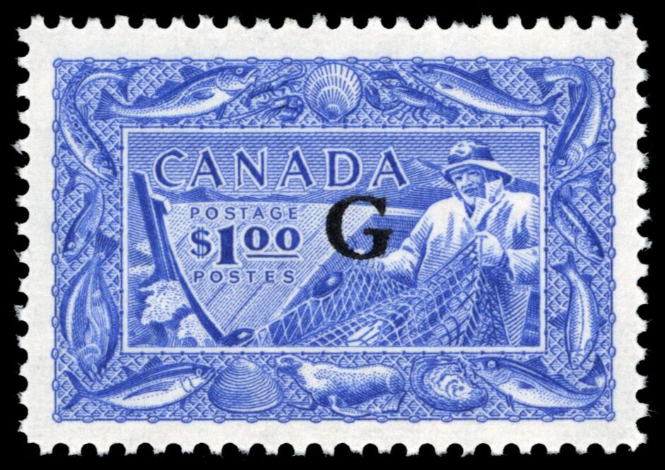 Fisherman, overprinted "G". 1$. Canada overprinted official stamp O27 from the peace and natural ressources issue.